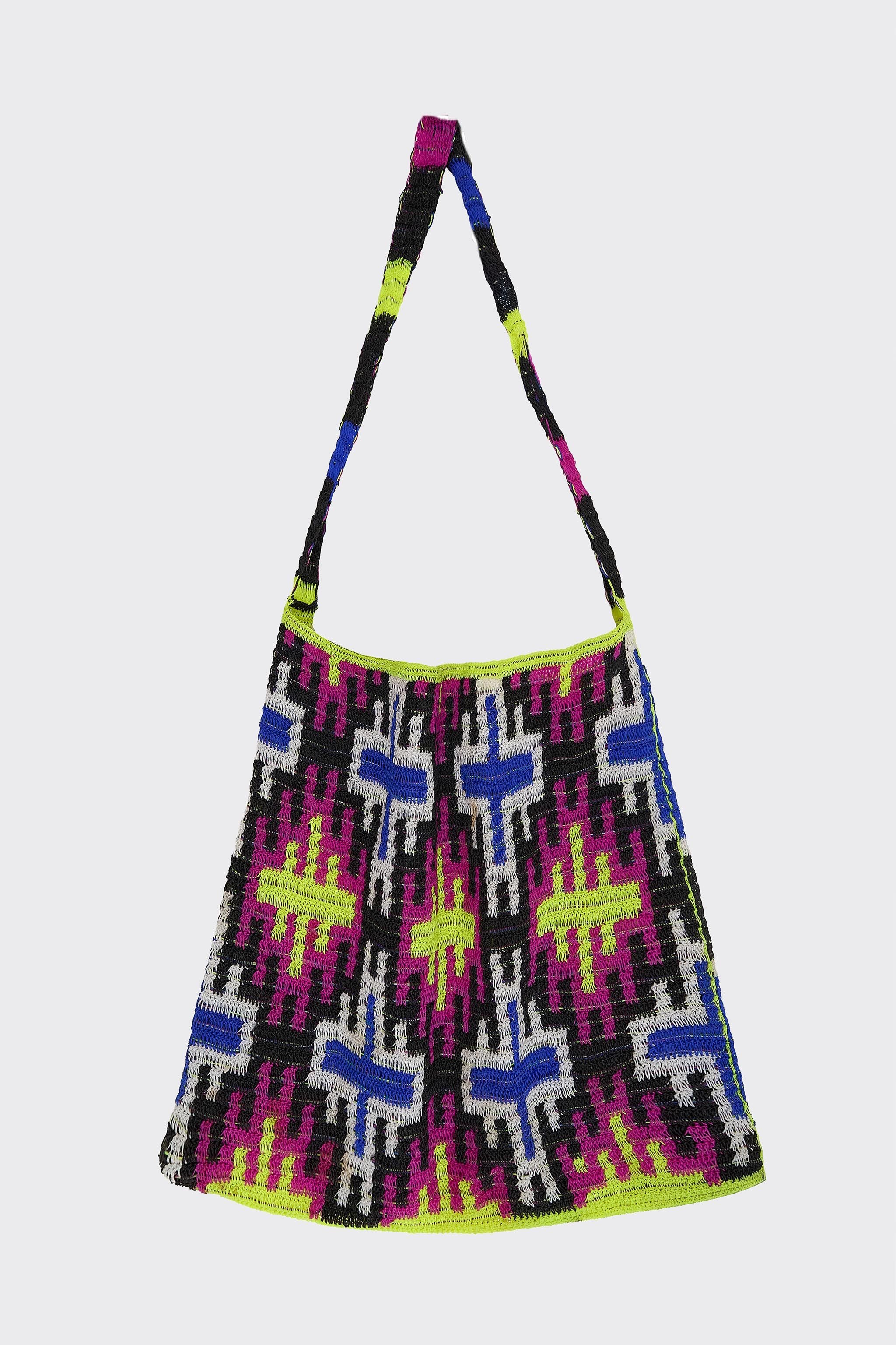 - Sac de plage bilum tissé à la main en nylon selon une technique de tissage traditionnelle.